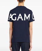 - navy blue/white - cotton - jersey texture - all-over logo print - crew neck - short sleeves - straight hem