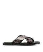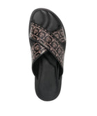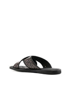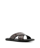 Gancini crossover strap sandals from SALVATORE FERRAGAMO featuring brown, open toe, tonal stitching, branded insole, slip-on style and flat rubber sole.