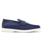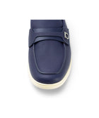 - midnight blue - calf leather - Gancini plaque - slip-on style - almond toe - branded insole - flat rubber sole