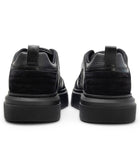- black - calf leather - round toe - panelled design - logo patch at the tongue - front lace-up fastening - branded insole - flat rubber sole