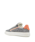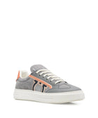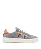 suede low-top sneakers from FERRAGAMO featuring grey, leather, front lace-up fastening, logo patch to the side, flat rubber sole and heel counter.
