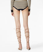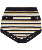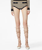 - black/white - gold - wool blend - metallic threading - horizontal stripe pattern - knitted construction - signature Roman Stud detailing - elasticated waistband - ribbed trim