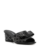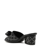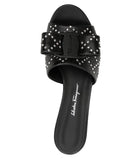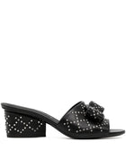 - black - calf leather - slip-on style - signature Vara bow detail - crystal embellishment - open toe - branded insole
