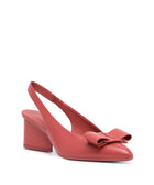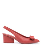 - lingonberry red - leather - signature Viva bow detail - slingback strap - slip-on style - 55mm block heel
